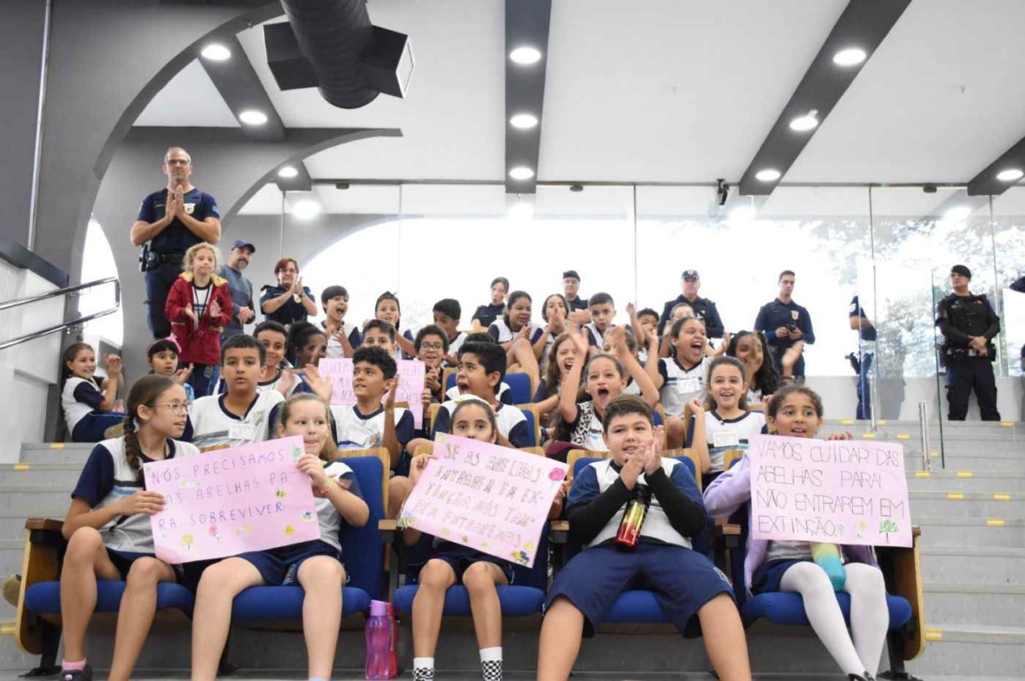 Em sessão da Câmara de Jundiaí desta semana, foi aprovado projeto de lei que cria campanha de conscientização e preservação de abelhas na cidade, por meio de fomento à cultura de abelhas nativas (sem ferrão) – meliponários -, além de ações educativas na sociedade civil. O texto, de autoria dos vereadores Faouaz Taha e Paulo Sérgio Martins, foi ovacionado por uma plateia especial que encheu a Casa de Leis: os alunos do 4º ano B da EMEB Maria Angélica Lorençon que já desenvolvem trabalho pioneiro na escola com a criação da Vila das Abelhas. Uma das alunas, Lorena Windlin, falou na tribuna e emocionou os presentes.