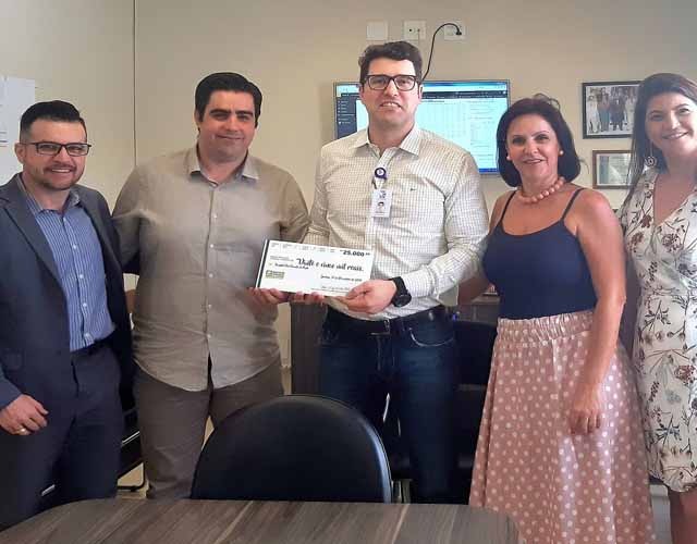 Recebidos pelo superintendente do hospital, Matheus Gomes; pela coordenadora do projeto no HSV, Viviane Rasera; e pela representante da Rede Jundiaí de Cooperação, Daniele Ruiz, participaram da entrega do cheque simbólico o presidente da ACE, Elton Monteiro, o vice-presidente, Mark William Ormenese Monteiro e as diretoras Leandra Maia Diniz e Michela Farina.