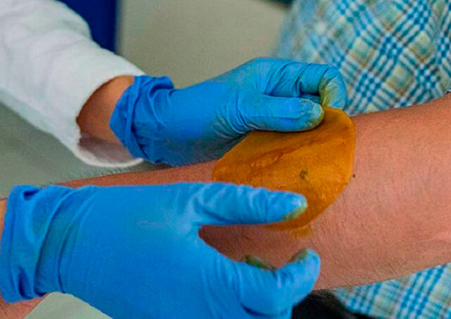 A partir dos resultados positivos, os pesquisadores desenvolveram um adesivo, que pode ser moldado de acordo com o tamanho do ferimento. Ele é utilizado sobre a ferida e atua fortemente na cicatrização.