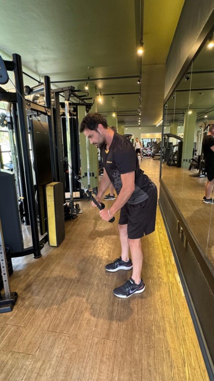 Função: Trabalha a musculatura das costas, auxiliando na postura e no fortalecimento do core. Dica: Mantenha a coluna ereta durante o exercício.