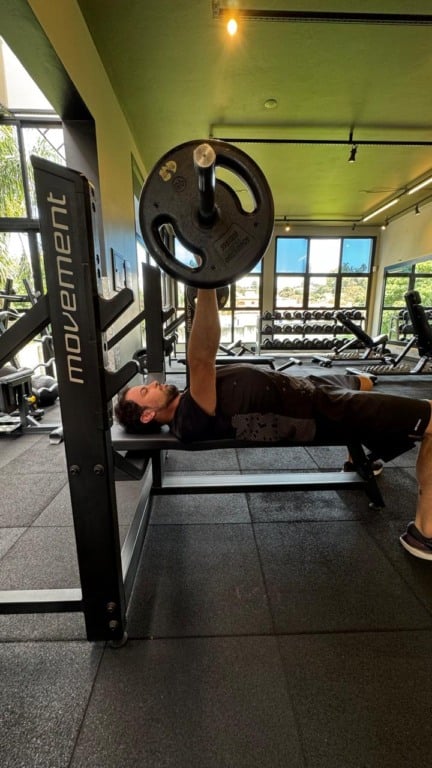 Função: Focado no fortalecimento do peitoral, ombros e tríceps. Dica: Para iniciantes, é mais seguro começar com a máquina antes de passar para a barra livre.