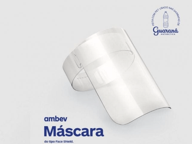 A Ambev vai fabricar, a partir da próxima quinta-feira (9), 3 milhões de máscaras do tipo face shield, que cobram todo o rosto. As unidades serão todas doadas ao Ministério da Saúde, que deverá fazer o repasse às unidades de saúde que mais precisam do equipamento de proteção.