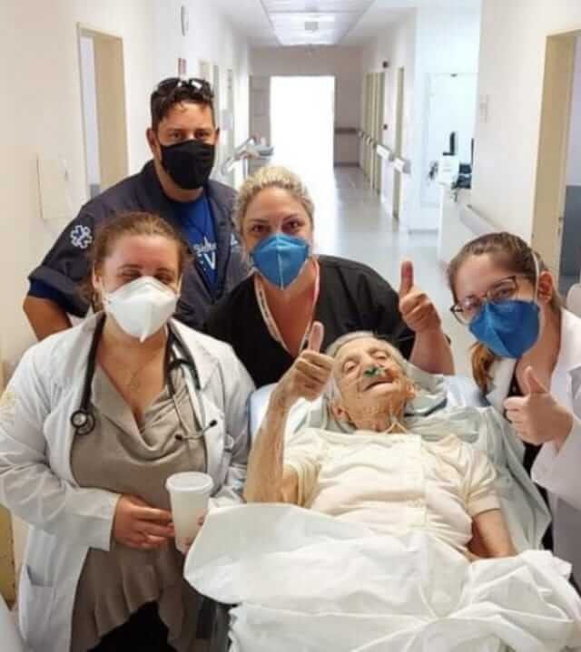 Em uma folha de sulfite, uma mensagem aguardada ansiosamente pela família de Helena Tortorella Pinheiro Machado: a idosa, de 100 anos de idade, voltou para casa curada da Covid19 após 17 dias internada. Se recuperando, Helena ainda precisa de repouso por causa de sintomas pós-doença, como cansaço e falta de ar.