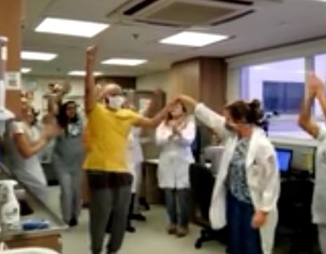 Ele recebeu alta médica do Hospital Samaritano, depois de 19 internados, sendo 11 na Unidade de Terapia Intensiva (UTI), e foi recebido com aplausos e uma festa surpresa da equipe médica.