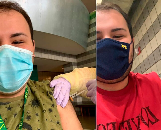 Um estudante brasileiro que trabalha como auxiliar de enfermagem em um hospital de Michigan, nos Estados Unidos, relatou ao G1 a sensação de alívio ao receber nesta terça-feira (12) a segunda dose da vacina contra Covid-19 produzida pela Pfizer em parceria com a BioNTech.