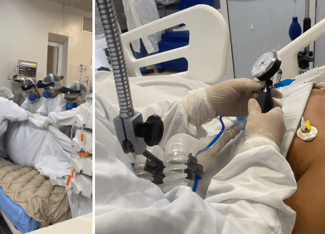 “Todo o sangue e água que estão no pulmão ficam na base. Virando o paciente de bruços há mais espaço livre de líquido, que vai ser usado para melhorar ventilação e troca de oxigênio. Apesar de ser um procedimento simples, os pacientes que receberam este tipo de manobra mostram resultado”. (veja vídeo)