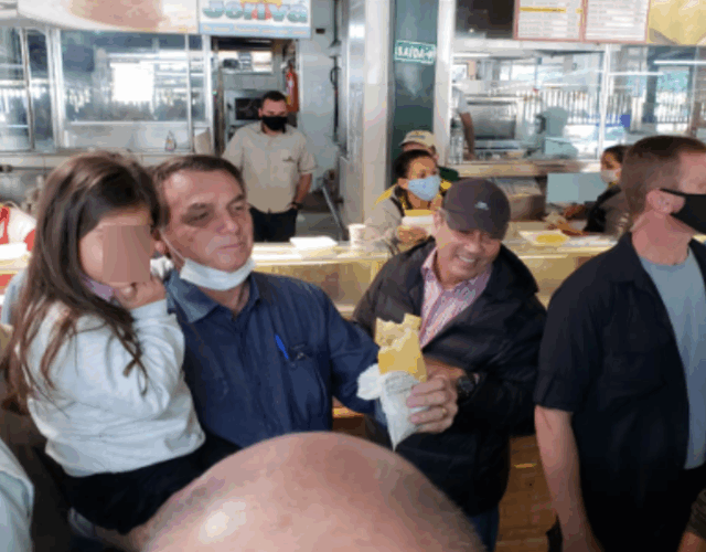 Bolsonaro ainda passou por uma lanchonete e, sem máscara, tirou foto com uma menina no colo.