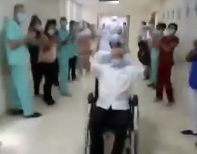 O vídeo publicado na terça-feira (21) mostra o momento da despedida, com um corredor cheio de médicos e enfermeiros que acompanharam Vicente Mariano Gomes durante o tratamento.