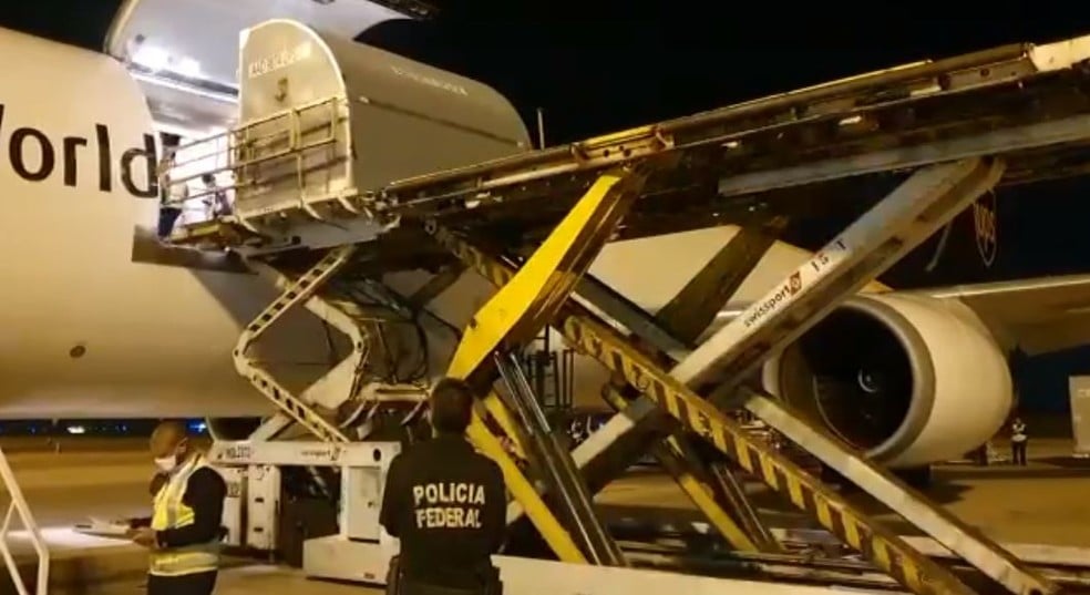 Na noite de ontem, equipes da Polícia Federal fizeram a segurança no desembarque da vacina e o transporte rodoviário até o Centro de Distribuição do Ministério da Saúde, em Guarulhos. Essa remessa foi a terceira e última entregue essa semana, e a oitava no total.