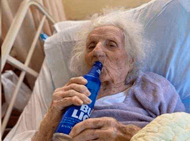 A polonesa Jennie Stejna comemorou a alta tomando uma cerveja. Ela foi a primeira a testar positivo para Covid-19 na casa de repouso onde vive. Já são 33 idosos infectados na unidade.