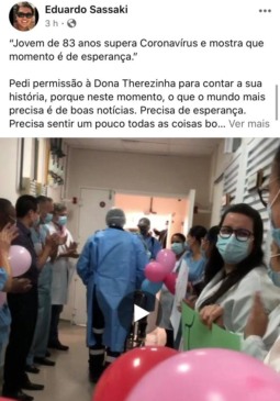 “Jovem de 83 anos supera Coronavírus e mostra que momento é de esperança.”