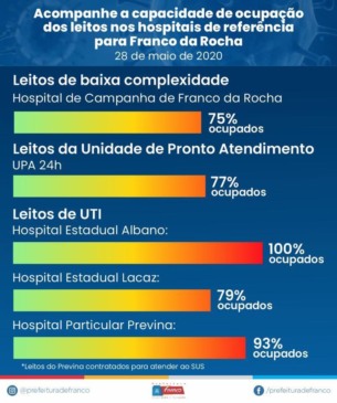 No município de pouco mais de 121 mil habitantes, são 537 casos confirmados e 45 mortes. A taxa de ocupação de leitos também é preocupante. Veja no quadro abaixo: