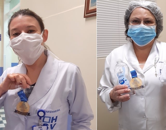 Para a enfermeira Janaína, a medalha tem muitos significados. “Simboliza humanização e empatia, demonstra que somos mesmo uma só equipe”, sorri agradecida. Quanto à máscara e ao álcool gel, ela revela que chegou a comprar, mas que agora está reabastecida.