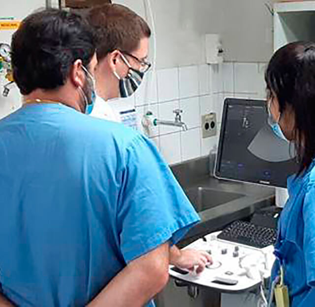 Milena Bezerra, médica da UTI, ressalta a importância do treinamento para utilização do novo equipamento, “A maioria dos médicos da UTI sabem fazer o uso do equipamento de ultrassom e quando recebemos um novo equipamento, é sempre importante passar por um treinamento a fim de ter o melhor uso do recurso. É uma ferramenta a mais para nossa equipe, nos auxiliando a uma conduta a ser tomada com o paciente a partir dos exames realizados com o equipamento”.