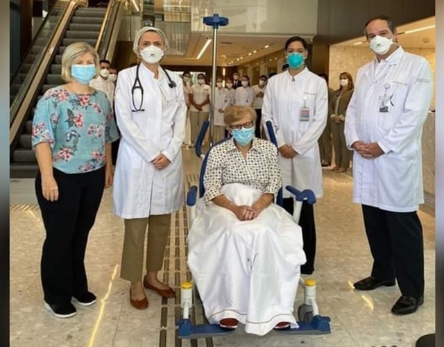 Ao deixar o hospital, Gina recebeu aplausos e elogios de toda equipe médica.