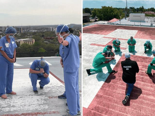 Imagens de médicos e enfermeiros se reunindo em oração nos hospitais viralizaram nas redes sociais.