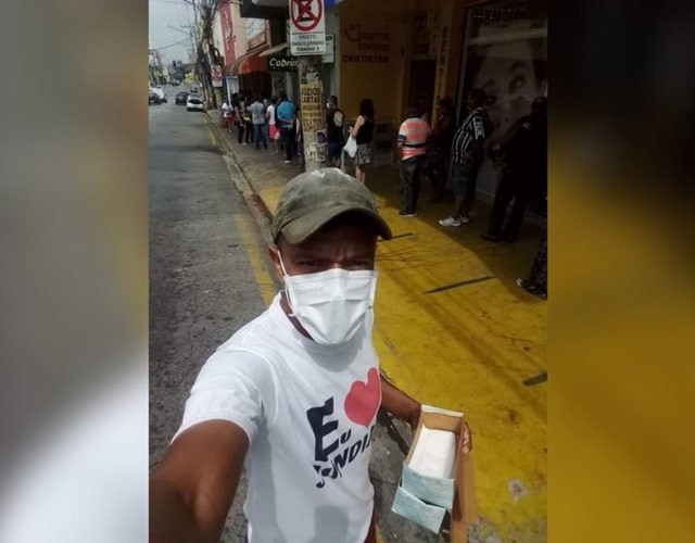 Com essa cena, que contradiz as recomendações das autoridades de saúde sobre prevenção ao novo coronavírus, ele decidiu ajudar de algum modo: comprou duas caixas de máscara e distribuiu à população.