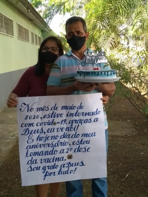 A festa com direito a bolo e parabéns dos familiares foi surpresa. “Foram dois presentes: a vacina e o bolo. Quando eu vi todo mundo ali, foi gratificante demais! Fiquei surpreso, não desconfiei de nada”, comentou João Carlos.