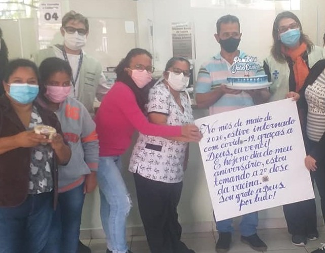 João Carlos Alves completou 56 anos de uma maneira que nunca mais esquecerá. Morador na Vila Ruy Barbosa, em Jundiaí, ele comemorou o aniversário com a família e funcionários da UBS (Unidade Básica de Saúde) Novo Horizonte depois de receber a segunda dose da vacina contra a Covid.