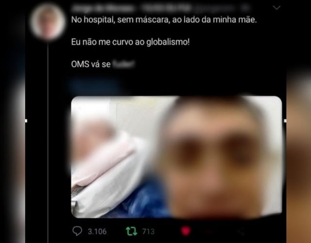 Um jovem gerou revolta na internet após publicar uma selfie ao lado da mãe internada em um hospital de Jundiaí. Na publicação, ele afirmava que não iria usar a máscara de proteção dentro da unidade.