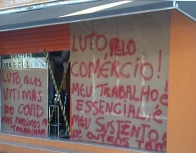 “Não somos perigosos. Mas nos deixam ‘presos’ sem trabalhar, sem condições de honrar as contas e as responsabilidades com aluguéis e funcionários. Estamos em luto pelas mortes na cidade, no Estado e no país, e em luto pelo comércio em geral, que está aos poucos, morrendo”, escreveram.