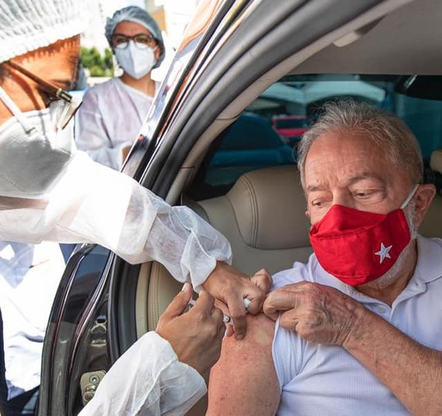 De acordo com informações do Uol, ele recebeu a CoronaVac e disse que era a do Instituto Butantan mesmo que ele queria tomar. Lula estava em um drive-thru montado em São Bernardo do Campo.
