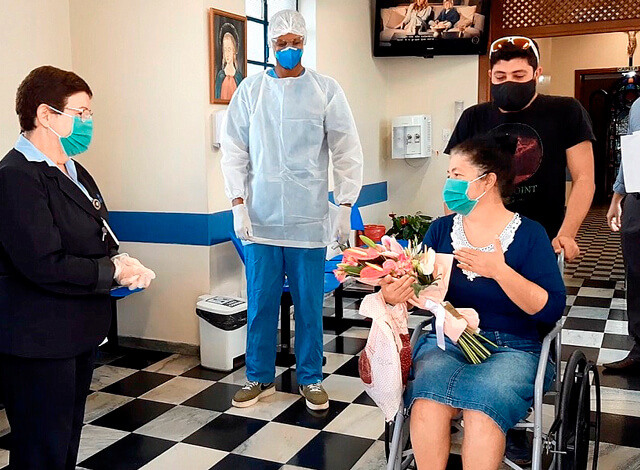 Esta quinta-feira (18) foi de comemoração para a paciente Marta Souza Brito, de 52 anos, que venceu a Covid-19 e recebeu alta do Hospital de Caridade São Vicente de Paulo (HSV).