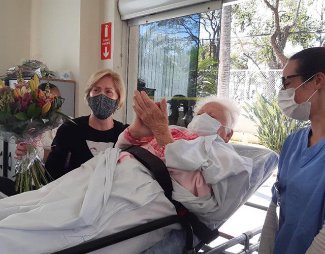 Prestes a completar 101 anos, a paciente Iolanda Maria Quaglia Maia, tem mais uma história incrível para contar: ela venceu a Covid-19. Na tarde desta terça-feira (21), ela recebeu alta do Hospital de Caridade São Vicente de Paulo (HSV) e foi recebida com aplausos e flores pela equipe da instituição.
