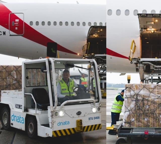 Os kits foram transportados em 417 caixas, somando 6,3 toneladas, e embarcados no Aeroporto Internacional de Guangzhou Baiyun, na província chinesa de Guangdong, na madrugada de domingo (29).