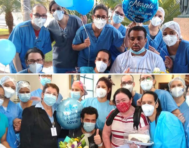 Os pacientes tiveram alta médica do Hospital São Vicente na tarde desta segunda-feira (3). Além de comemorar a volta pra casa, ambos fazem aniversário neste mês de agosto e por isso, a celebração foi dupla.