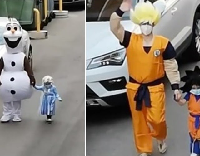 Durante o isolamento na Espanha, um homem de 34 anos decidiu descer fantasiado de Olaf, da Frozen, para levar o lixo da casa onde mora com a mulher e dois filhos.