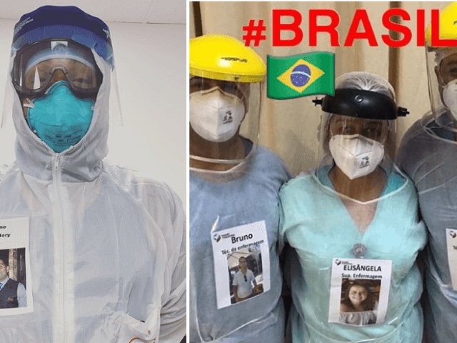 Na segunda (13), o terapeuta recebeu uma foto de profissionais de saúde brasileiros com suas fotos coladas na roupa especial.