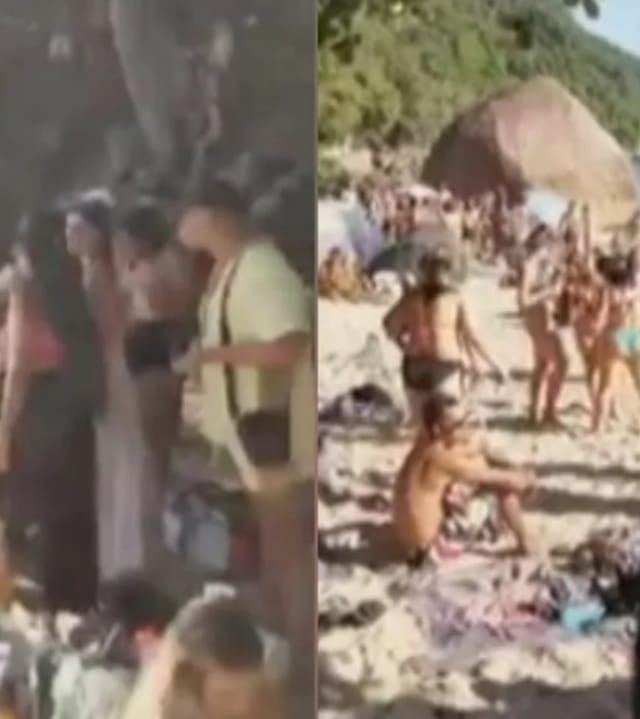 Neste domingo (11), um vídeo publicado nas redes sociais mostra uma praia deserta no Guarujá, litoral de São Paulo, com centenas de banhistas desrespeitando as medidas restritivas contra a Covid19. Na Praia do Sangava, as pessoas circulavam sem máscaras, bebendo e com caixas de som, cadeiras e guarda-sóis na faixa de areia.