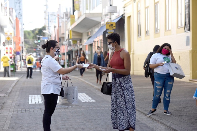 No feriado de Corpus Christi, a CDL e o Sincomercio mobilizaram 15 pessoas para a entrega das máscaras, que aconteceu em vias com grande concentração de lojas, como as ruas do Rosário, Barão de Jundiaí e Rangel Pestana. Receberam a máscara tanto quem já usava o acessório (que era a maioria) quanto os que ainda estavam sem ele.
