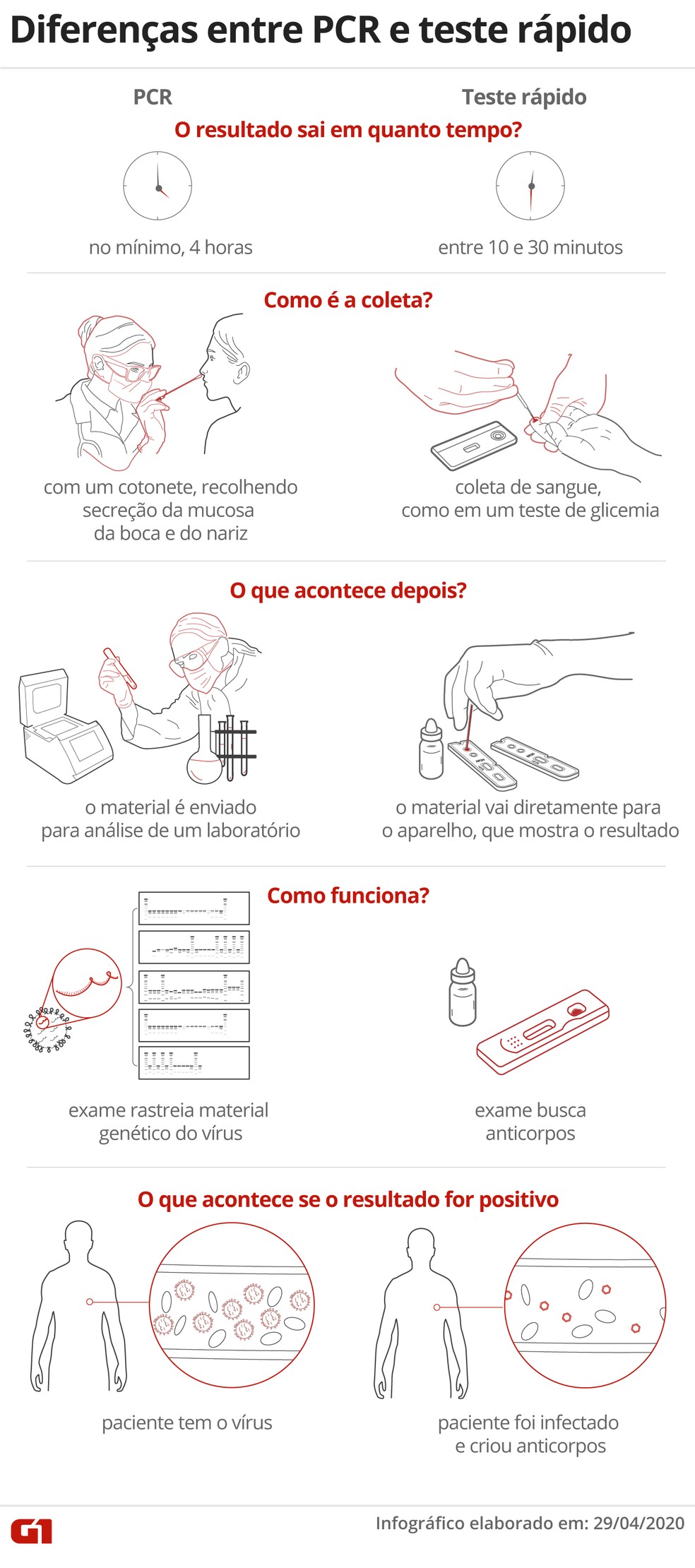 O teste RT-PCR é recomendado após o quarto dia de sintomas e detecta se a pessoa está infectada no momento do teste.