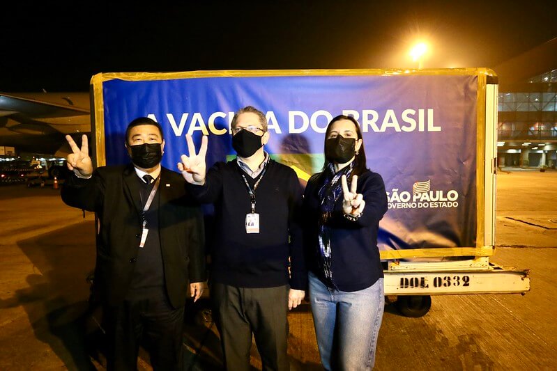 O carregamento das doses, também conhecidas como vacinas do Butantan, saiu de Pequim (China) e fez escala em Istambul (Turquia), antes de chegar ao Brasil. O lote foi recebido por Jean Gorinchteyn, Secretário da Saúde do Estado de São Paulo, Reinaldo Sato,