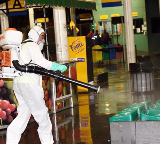 A segunda inclui a pulverização dos lugares com amônia quaternária – altamente eficaz contra fungos, bactérias e vírus. Esta solução é aprovada pela Agência Nacional de Vigilância Sanitária (Anvisa).