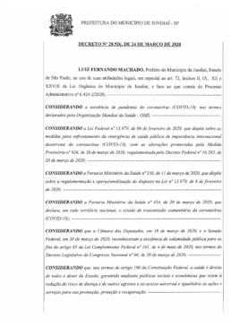 O prefeito de Jundiaí, Luiz Fernando Machado, decretou Estado de Calamidade Pública em Jundaí nesta terça-feira (24), em decorrência do novo coronavírus.