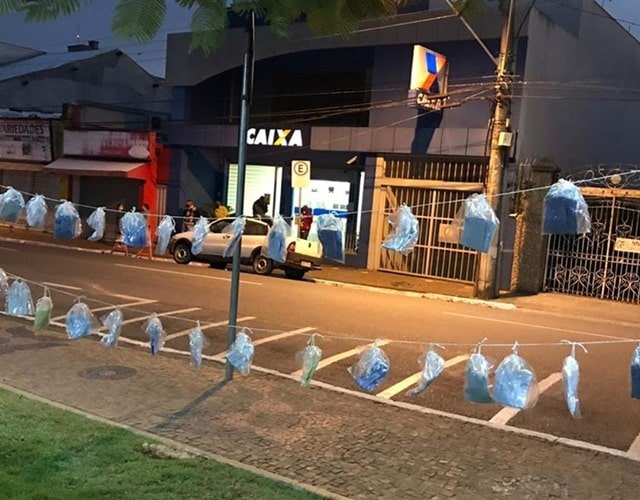 Projeto realizou a primeira ação na Praça da Bandeira, com 50 máscaras de tecidos penduradas para a população, e no Terminal Central do município.