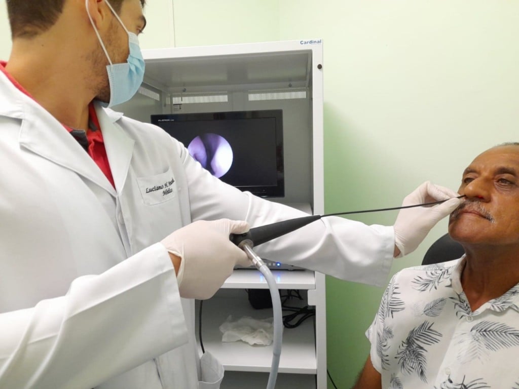 Esse procedimento é realizado pelos médicos otorrinolaringologistas Viviane Martori Pandini e Juliano de Alencar Vasconcelos, que contam com a ajuda de 10 residentes da Faculdade de Medicina de Jundiaí (FMJ). Segundo Viviane, esse exame é praticamente uma extensão do exame físico. É indicado quando o paciente apresenta queixas de coriza, ronco, sangramentos recorrentes, alterações de voz que sejam persistentes, dores de cabeça e garganta e tosse crônica. Ele é feito por meio de um aparelho chamado endoscópio – um tubo fino e flexível com uma câmera na ponta – que permite ver do nariz até a entrada da traqueia. “É um exame feito no próprio consultório, apenas com anestesia tópica local”.