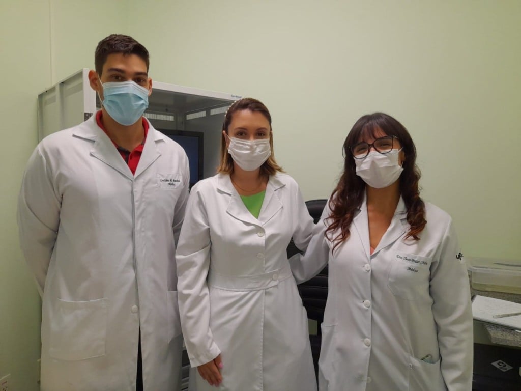 A otorrinolaringologista Viviana Martori Pandini com os residentes da FMJ Thais Potter e Luciano Henrique Antonioli