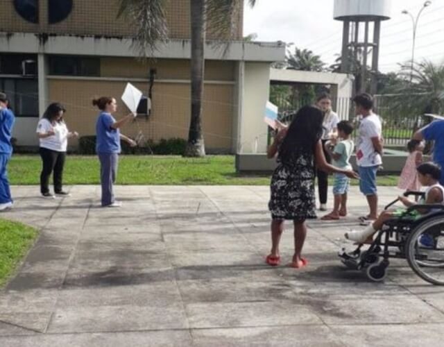 A equipe multidisciplinar do hospital ofereceu pipas para cerca de dez crianças internadas no hospital, o objetivo da iniciativa é reduzir o estresse e ansiedade, que é comuns em crianças internadas.