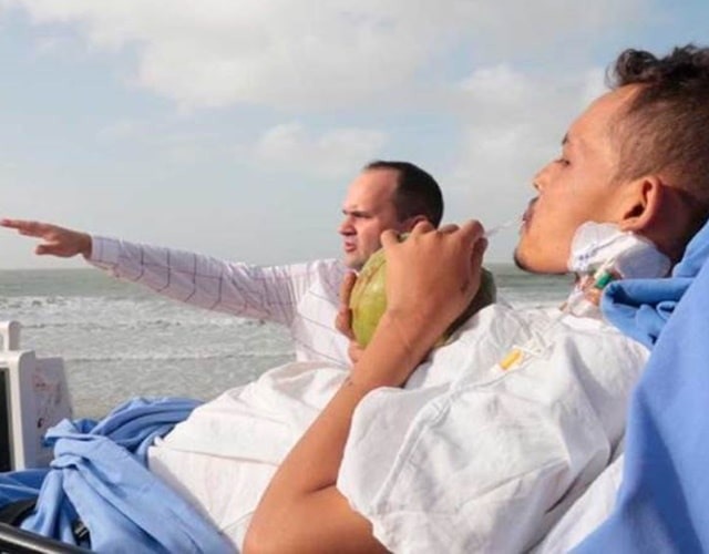 Ele tomou sol em uma maca na praia, com direito a água de coco e até sorvete. Não foi simples para os profissionais envolvidos, que precisaram da autorização do hospital e a presença de um parente.