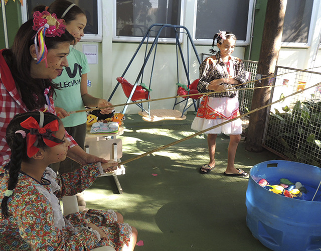 O clima de festa junina tomou conta da brinquedoteca do Hospital Universitário nesta quarta-feira. Os voluntários enfeitaram o espaço com bandeirinhas, caipirinha e muito xadrez e proporcionaram um dia diferente com atividades cedidas pelas escolas municipais Adelino Brandão e João Batista Toledo como bola na lata, pescaria, frango na panela, boca de palhaço e a tradicional quadrilha.