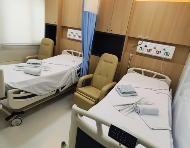O projeto desenvolvido pelas arquitetas do grupo ‘Um Tijolo por Dia’ priorizaram o conforto e bem-estar dos pacientes. Portanto, os quartos são equipados com ar-condicionado, iluminação (ambiente e individual), piso laminado, janelas anti-ruídos, nichos de madeira, camas comandadas por controle e poltronas.