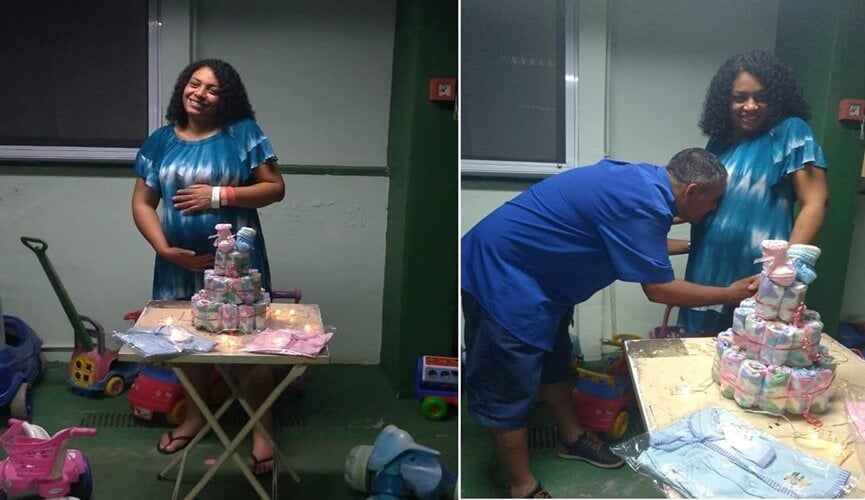 Lucimara Coelho, de 40 anos, está com 24 semanas de gestação. Ela está internada devido à pressão alta e achava que não conseguiria realizar a comemoração com familiares.