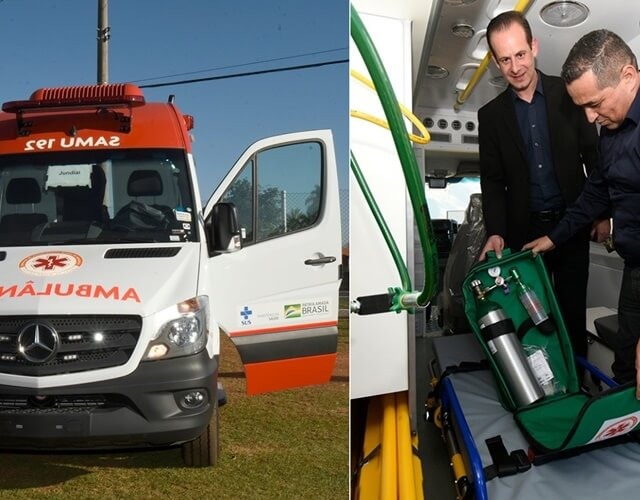 No evento de solenidade em Sorocaba (SP), o gestor da Unidade de Gestão de Promoção da Saúde de Jundiaí (UGPS), Tiago Texera, recebeu as chaves do veículo das mãos do ministro da Saúde, Luiz Henrique Mandetta. “É mais conforto e segurança tanto para quem utiliza o serviço do SAMU quanto para os profissionais da saúde”, afirmou Texera.