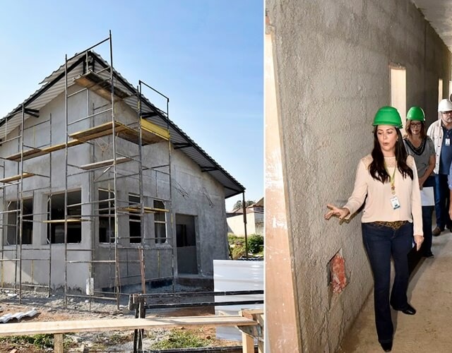 O prédio em construção tem 430 metros quadrados e vai contar com cinco consultórios médicos e de enfermagem, dois odontológicos, além de salas de procedimentos, inalação, recepção e demais departamentos administrativos.