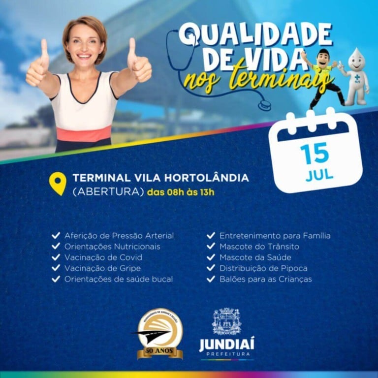 A Unidade de Gestão de Mobilidade e Transporte (UGMT) e a Unidade de Gestão de Promoção da Saúde (UGPS) de Jundiaí darão início, neste sábado (15), ao programa Qualidade de Vida nos Terminais. O programa acontece das 8h às 13h, visando proporcionar ações gratuitas de saúde e diversão aos usuários do transporte coletivo.