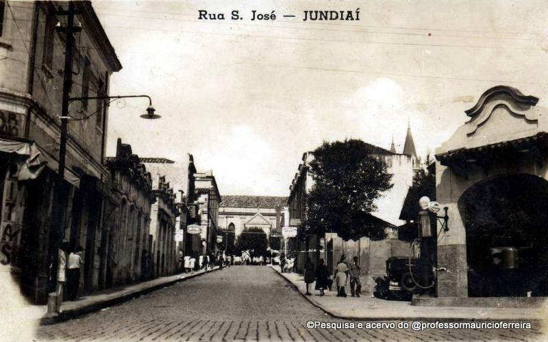 Notem o caminhão GMC, um Citroen, o Studebacker, uma jardineira, um casal à espera do atendente do posto de gasolina para verificar a água do motor (tinha que colocar água com frequência, naquela época) e uma adolescente, descendo calmamente a rua. Ao fundo, o prédio da Escola Normal – dirigido pela professora Ana Pinto Duarte Paes – que ficava na esquina da Barão de Jundiaí com a Padroeira.